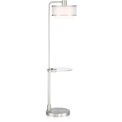 360 Lighting Abba Modern Floor Lamp Standing 66" Tall Brushed Nickel Silver Metal White Hardback Drum Shade for Living Room Bedroom Office House Home