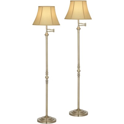 Regency Hill Jenson Traditional 54" Tall Standing Floor Lamps Set of 2 Lights Swing Arm Pharmacy Adjustable Silver Brushed Nickel Finish Living Room