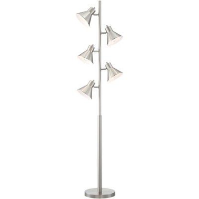 Possini Euro Design Modern Floor Lamp 63" Tall Brushed Steel White Orb Petal Flower Shade Dimmable for Living Room Reading Bedroom Office