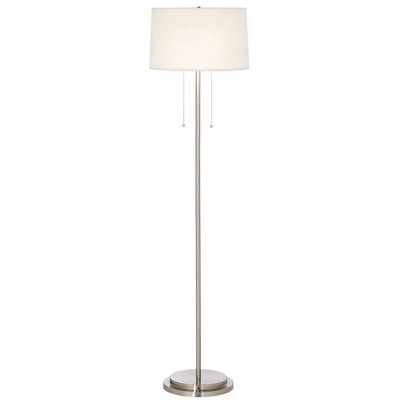 Possini Euro Design Simplicity Modern Floor Lamp 59" Tall Brushed Nickel Silver Off White Tapered Drum Shade for Living Room Bedroom Office House Home