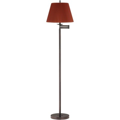 360 Lighting Modern 60" Tall Standing Floor Lamp Skinny Adjustable Swing Arm Brown Metal Bronze Finish Living Room Bedroom Pleated Rust Brown Shade