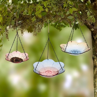 Hanging Glass Birdbath - Flower Shape