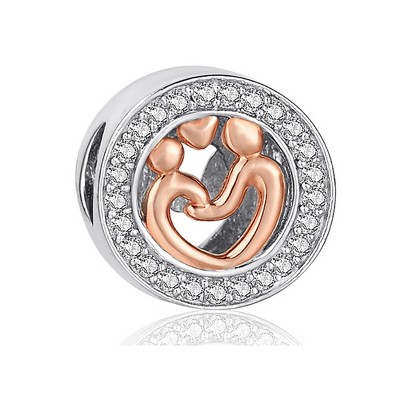 Family Love Charm for Women CZ Sterling Silver European Bead for Bracelet Ginger Lyne Collection