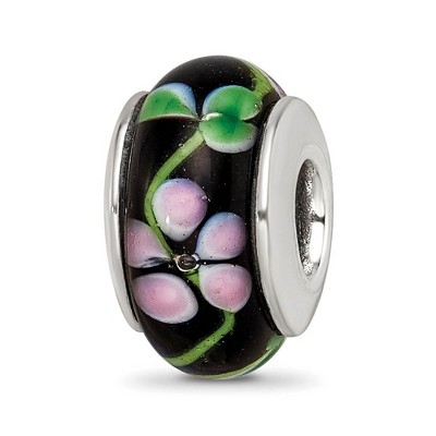 Black Bow Jewelry Sterling Silver with Pink Crystals Pink Blossoms Bead Charm