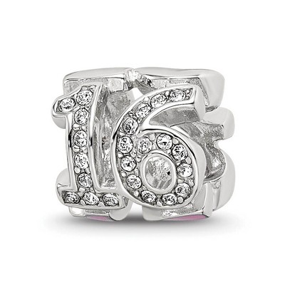 Black Bow Jewelry Sterling Silver, Pink Enamel & Crystals 3-Sided Number 16 Bead Charm