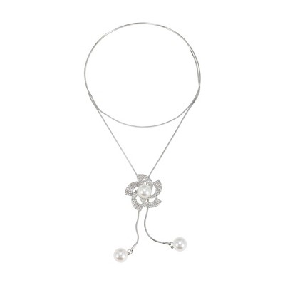 Unique Bargains Simple Pendant Sweater Necklace 31.89" Gray Silver Tone 1 Pc