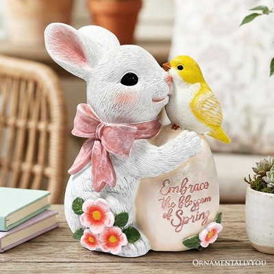 Bunny and Yellow Bird Easter Garden Statue, 7" Spring Rabbit Figurine Outdoor Decor| OrnamentallyYou