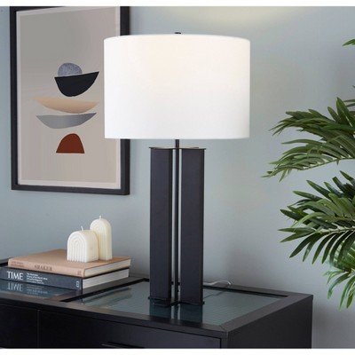 LumiSource Cosmo 28" Contemporary Table Lamp Black Metal and White Linen