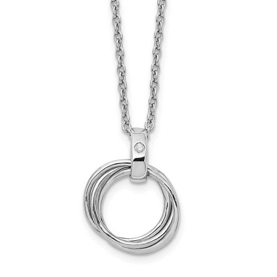 Black Bow Jewelry Triple Ring Diamond Necklace in Rhodium Plated Silver, 18-20 Inch
