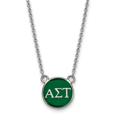 Black Bow Jewelry Sterling Silver Alpha Sigma Tau Greek Life Small Enameled Disc Necklace 18 Inch