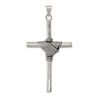 Black Bow Jewelry Sterling Silver Large Antiqued Solid Tube Rope Cross Pendant, 32x63mm