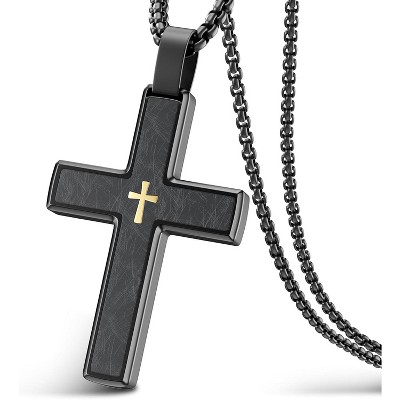 Steeltime 24" Men's black ip stainless steel textured cross pendant