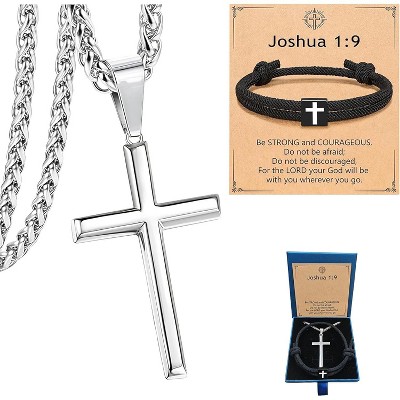 Steeltime 24" Men's stainless steel and black simulated diamonds braided cross pendant