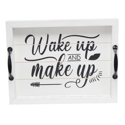 HomeRoots 16" White And Black Wake Up and make up Serving Tray With Handles And LED Lights