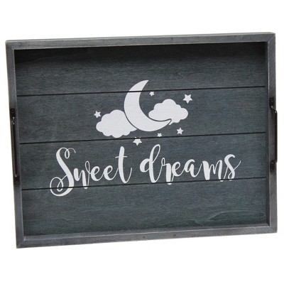 HomeRoots 16" Dark Blue And White Sweet Dreams Serving Tray With Handles
