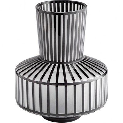 HomeRoots 10" Off White Terracotta Striped Cylinder Table Vase