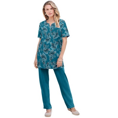 Roaman's Plus Size Soft Knit Print Tunic With Notch Neckline