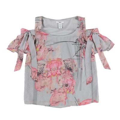 1.STATE Womens Printed Cascade-Sleeve Floral Pullover Blouse
