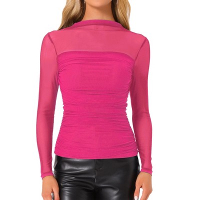 Women's Square Neck Mesh Panel Blouse Delicate Sheer Accent Top for Parties, Dates Everyday Elegance