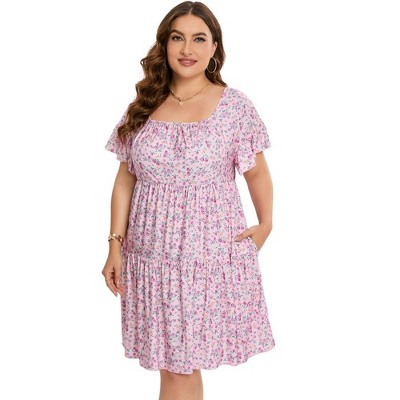 Roaman's Plus Size Flutter Sleeve V-Neck Fit And Flare Bi-Stretch Maxi Dress