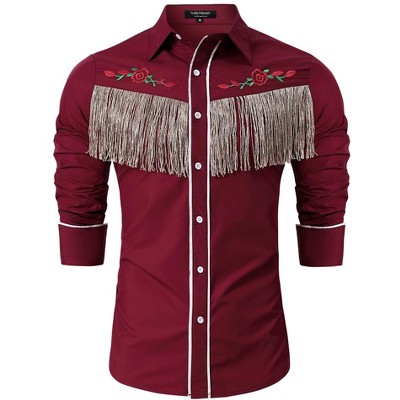 WhizMax Men's Western Cowboy Fringe Shirt Long Sleeve Rose Embroidered Slim Fit Button Down Shirt
