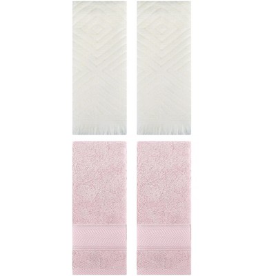 REGALWOVEN 4 Pcs Solid Textured Cotton Soft Absorbent Decorative Hand Towel