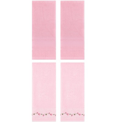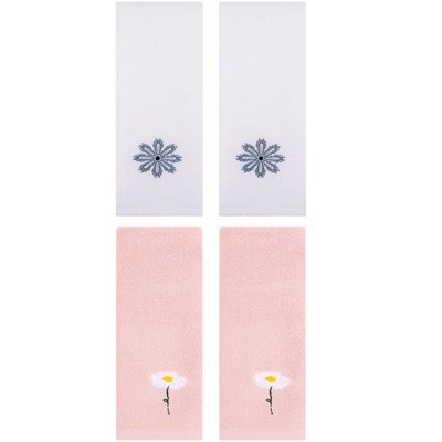 REGALWOVEN 4 Pcs Bathroom Kitchen Soft Absorbent Cotton Floral Embroidered Hand Towel 13" x 29"