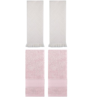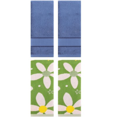REGALWOVEN 4 Pcs Floral Pattern Cotton Bathroom Hand Towel