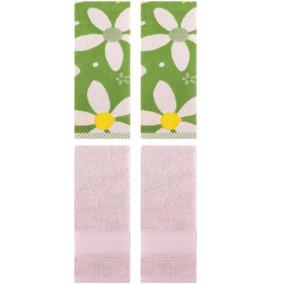 REGALWOVEN 4 Pcs Cute Floral Pattern Soft Absorbent Hand Towel for Bathroom