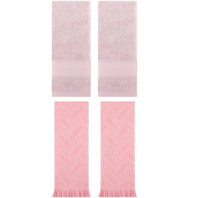 REGALWOVEN 4 Pcs Cotton Soft Absorbent Jacquard Pattern Boho Decorative Hand Towel 13" x 29"