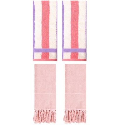 REGALWOVEN 4 Pcs Bathroom Decorative Cotton Soft Absorbent Sold Striped Hand Towel 14" x 30"