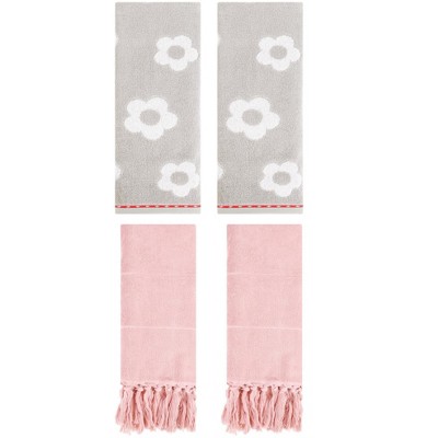 REGALWOVEN 4 Pcs Cute Floral Pattern Cotton Bathroom Soft Absorbent Hand Towel