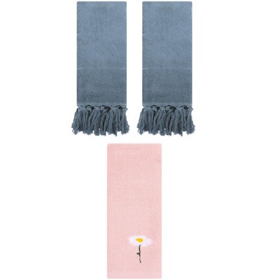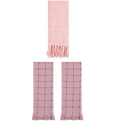 REGALWOVEN 3 Packs Solid Textured and Tassels Soft Absorbent Decorative Hand Towel