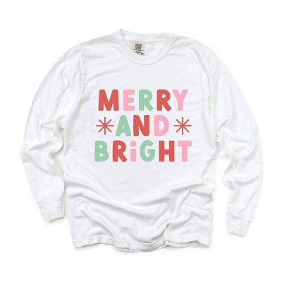 Simply Sage Market Women's Retro Merry and Bright Stars Long Sleeve Garment Dyed Tee