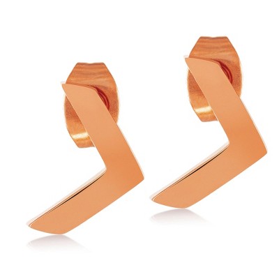 Steeltime Ladies stainless steel and 18k rose gold plated simulated diamonds stud earrings set