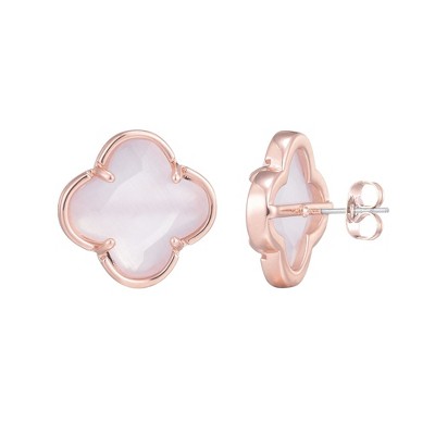 Adornia 14k Rose Gold Plated Clover Stone Stud Earrings