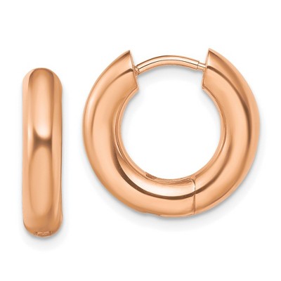 Chisel Stainless Steel Polished Rose IP-plated 4mm Hinged Hoop Earrings