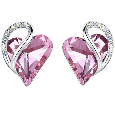 Leafael Infinity Love Heart Stud Earrings with Birthstone Crystal Women's Gifts, Silver-tone