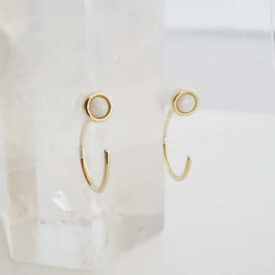 Steeltime Ladies brass micro pave half caged hinge mini hoop with clear cz & post piercing. Color Options: White, Rose Gold