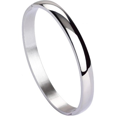 Womens Bangle 8MM Stainless Steel Bracelet Oval Polished Finish Cuff Bangle 6.7"