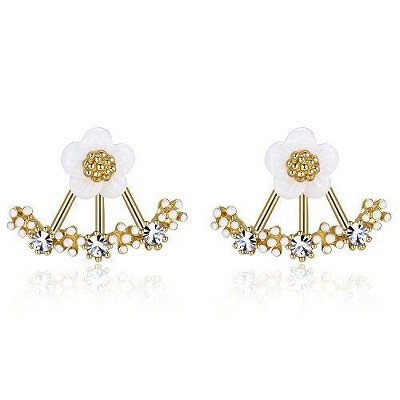 Hollywood Sensation Daisy Jacket Earrings with Porcelain Flower and Cubic Zirconia