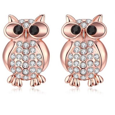 Hoot Owl Stud Earrings Rose Gold Plated Cz Teacher Women Ginger Lyne Collection