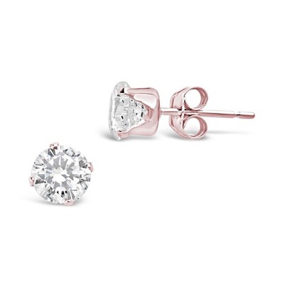 Guili Sterling Silver Rose Gold Plated Clear and Morganite Round Cubic Zirconia Stud Earrings, a Delicate and Elegant Jewelry Piece for Chic Style