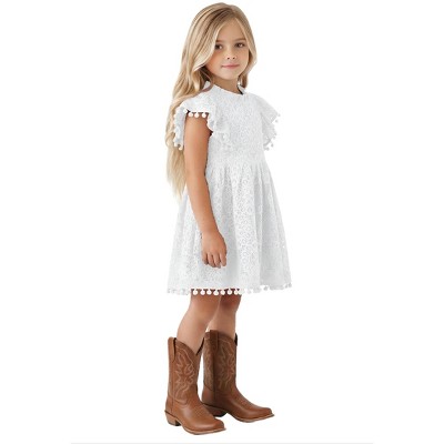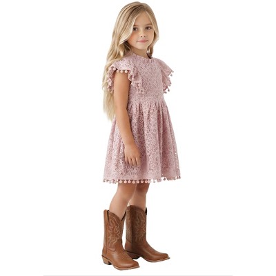 2Bunnies Girls 3T-9yr Lace Pom Pom Trim Girl Dress