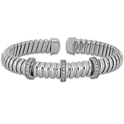 EVERLY JEWELRY | Two Tone Silver 0.20ct TW Whiite Cubic Zirconia 7.8mm popcorn design stretch Bangle