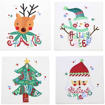 Dainty Home Wood And Resin Designed 4" Round Coaster Set Of 4
