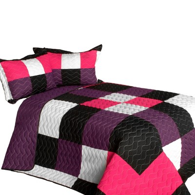 Slickblue 100% TC Fabric Quilt Set, Handmade, Full/Queen Size, Geometric Patchwork, Pink/Black, 3-Piece Set