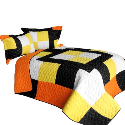 Slickblue Full/Queen 3PC Vermicelli-Quilted Quilt Set, Patchwork in Orange or Pink, Reversible, with Shams