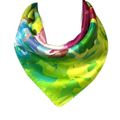 Wrapables Satin Neckerchief Square Scarf 26.5 x 26.5 Inches, Green Butterflies