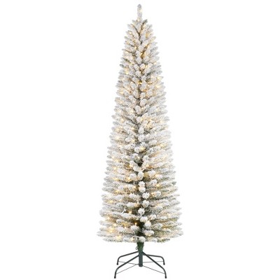 8ft Flocked Scarecrow-Shaped Christmas Tree with 470 Warm White LED Lights, 1242 PVC Memory Wire Tips,Hinged Structure,Realistic Snowy Holiday Tree
